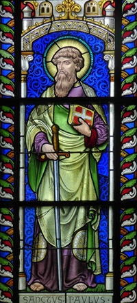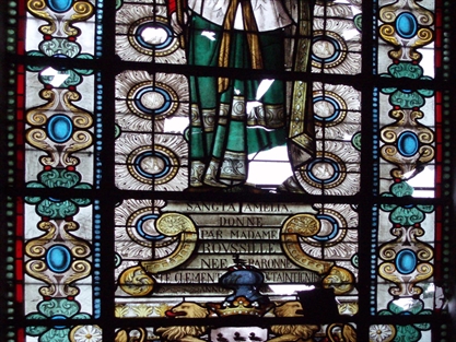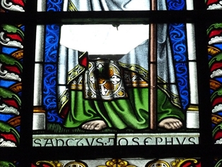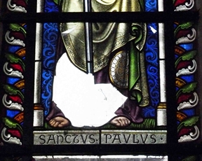Eglise de Rochefort. Vitrail soufflé par le vent.