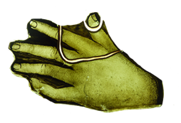 Pour maintenir parfaitement jointifs les morceaux de la pièce cassée malgré les ondulations du verre, on utilise des petits cavaliers métalliques (visibles sur la photo ci-dessus). Après qu’ils aient été placés, on applique une succession de minuscules gouttes de colle sur le trait de casse. Cette colle de restauration étant très fluide, elle s’infiltre par capillarité dans l’épaisseur du verre