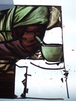 Pour conserver l’authenticité du vitrail, lorsqu’une pièce de verre est brisée, il est primordial d’en recueillir tous les débris pour procéder au collage.