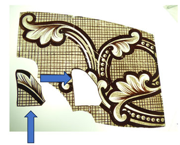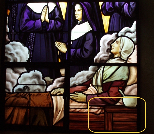 Ci-contre, la portion du panneau de vitrail à restaurer.