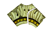 La méthode tiffany a été utilisée pour assembler la lacune repeinte et les parties d’origines restaurées par collages